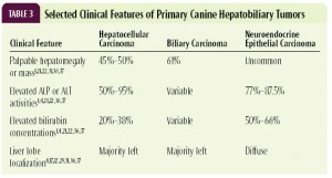 Σύμφωνα με τον πίνακα από το site www.DVM360.com η κλινική και η βιοχημική εικόνα του ασθενή συμβαδίζει με τα πιο συχνά ευρήματα του ηπατοκυτταρικού καρκινώματος.