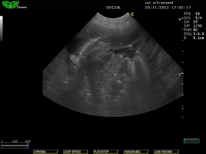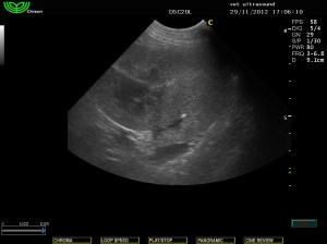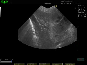 Στην υπερηχοτομογραφική εξέταση της κοιλίας βρέθηκε αύξηση της ηχογένειας της φλοιώδους μοίρας των νεφρών.
