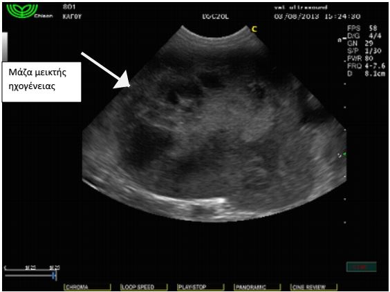 Στον υπέρηχο κοιλίας βρέθηκε μάζα σπηλαιώδης, η οποία