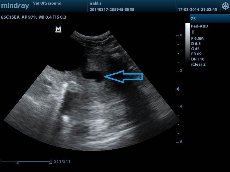 Προσκομίστηκε λόγω στραγγουρίας εδώ και μία εβδομάδα. Έγινε υπέρηχος κοιλίας όπου και εντοπίστηκε διάταση της ενδοπροτατικής μοίρας της ουρήθρας και δύο λίθοι, ο ένας βρισκόταν στην ουροδόχο κύστη (ενδοπροστατική μοίρα της ουρήθρας) και ο άλλος ακριβώς πίσω από το πεϊκό οστό, σύνηθες μέρος εντόπισης λίθων λόγω του οτι μειώνεται το εύρος της ουρήθρας μέσα σε αυτό. Ο ασθενής χειρουργήθηκε ώστε να ανακουφιστεί από τα συμπτώματά του. Δεν υπήρχε διάταση της νεφρικής πυέλου, ούτε διαταραχή της νεφρικής λειτουργίας, λόγω του οτι ο λίθος δεν προκαλούσε πλήρη απόφραξη της ουροφόρου οδού.