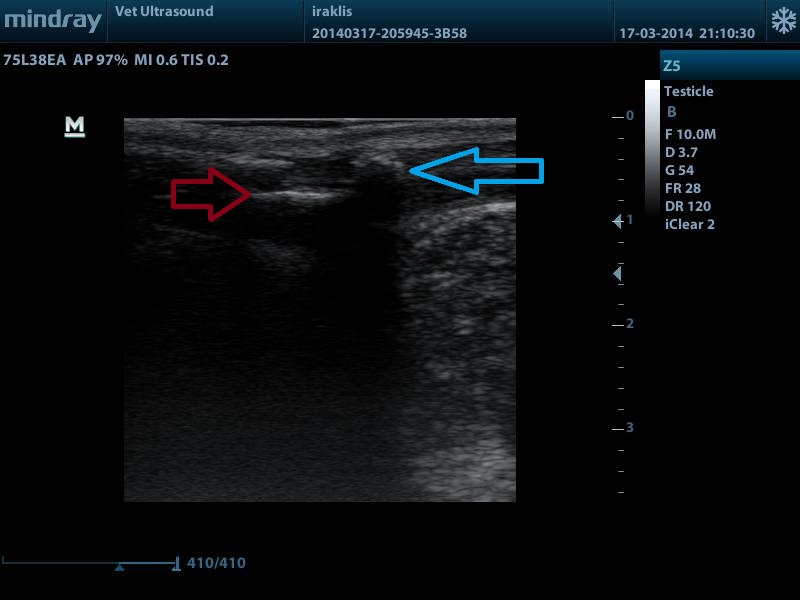ΤΟ ΒΕΛΟΣ ΔΕΙΧΝΕΙ ΤΟΝ ΛΙΘΟ Ο ΟΠΟΙΟΣ ΒΡΙΣΚΕΤΑΙ ΣΤΗΝ ΟΥΡΟΔΟΧΟ ΚΥΣΤΗ ΚΑΙ ΛΟΓΩ ΤΗΣ ΣΤΑΣΗΣ ΤΟΥ ΑΣΘΕΝΗ ( ΟΡΘΙΑ ΘΕΣΗ) ΕΧΕΙ ΠΕΣΕΙ ΣΤΗΝ ΕΝΔΟΠΡΟΣΤΑΤΙΚΗ ΜΟΙΡΑ ΤΗΣ ΟΥΡΗΘΡΑΣ. ΧΑΡΑΚΤΗΡΙΣΤΙΚΗ ΕΙΝΑΙ Η ΣΚΙΑ Η ΟΠΟΙΑ ΦΑΙΝΕΤΑΙ ΚΑΤΩ ΑΠΟ ΤΟΝ ΛΙΘΟ ΛΟΓΩΣ ΤΗΣ ΕΝΤΟΝΗΣ ΑΠΟΡΡΟΦΗΣΗΣ ΤΟΥ ΗΧΟΥ. ΤΑ ΑΣΤΕΡΙΑ ΑΦΟΡΙΖΟΥΝ ΤΟΝ ΕΝΑΝ ΛΟΒΟ ΤΟΥ ΠΡΟΣΤΑΤΗ ΣΕ ΕΠΙΜΗΚΗ ΤΟΜΗ, Ο ΟΠΟΙΟΣ ΕΧΕΙ ΜΙΚΡΕΣ ΚΥΣΤΕΙΣ ΣΤΟ ΠΑΡΕΓΧΥΜΑ ΤΟΥ.