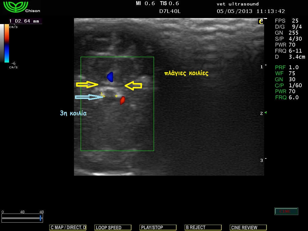 Στην κλινική εξέταση δεν παρατηρήθηκαν αλλοιώσεις στην νευρολογική εξέταση των εγκεφαλικών συζυγιών και των νωτιαίων νεύρων. Υπήρχε μία μικρή απόκλιση των οφθαλμών από τον κεντρικό άξονα και για τον λόγο αυτό είχε θορυβηθεί ο ιδιοκτήτης. Δεν είχε επέλθει οστεοποίηση των συναρθρώσεων των οστών του κρανίου, οπότε η υπερηχοτομογραφική εξέταση ήταν εφικτή διαμέσου της συνάρθρωσης των βρεγματικών με τα μετωπιαία οστά. Δεν υπήρχε διάταση των πλάγιων κοιλιών του εγκεφάλου και έτσι το ενδεχόμενο του υδροκέφαλου αποκλείστηκε.