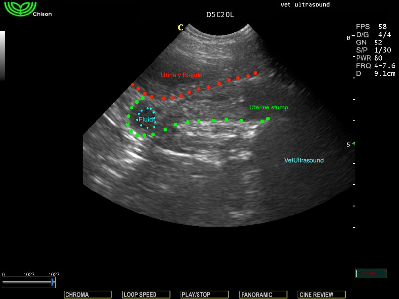 Διάγνωση: Εικόνα αρχικού σταδίου πυομήτρας του κολοβώματος.
