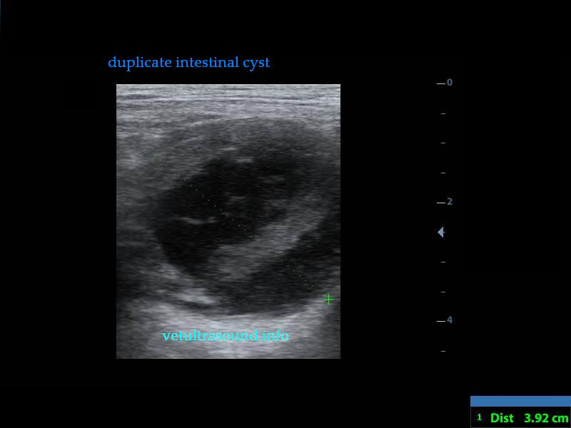 Diagnose: Duplicate intestinal cyst. I am attaching a link of a case report from the Canadian Veterinary Journal.