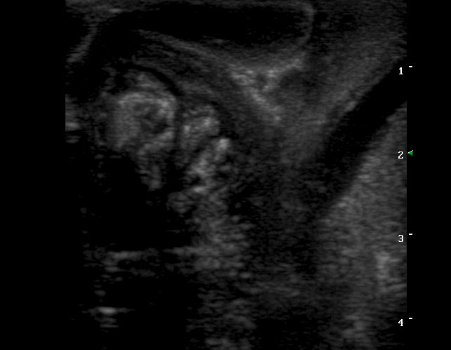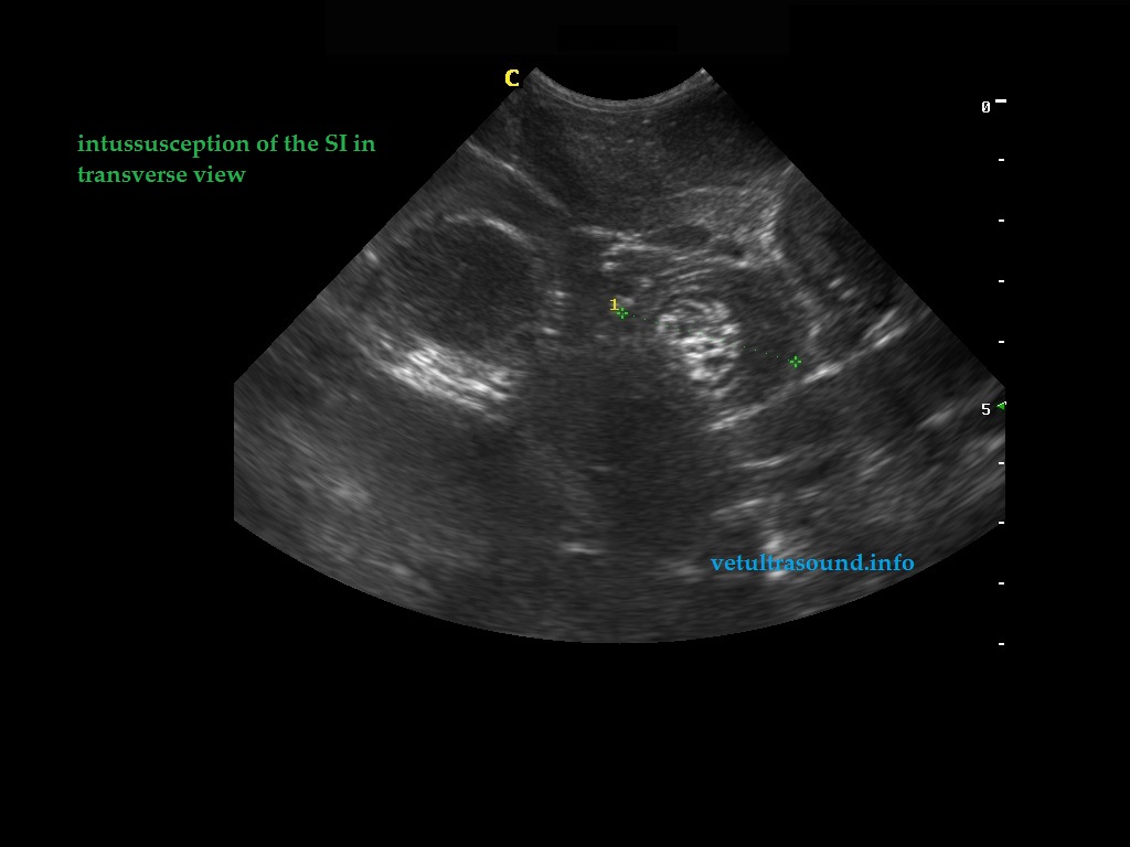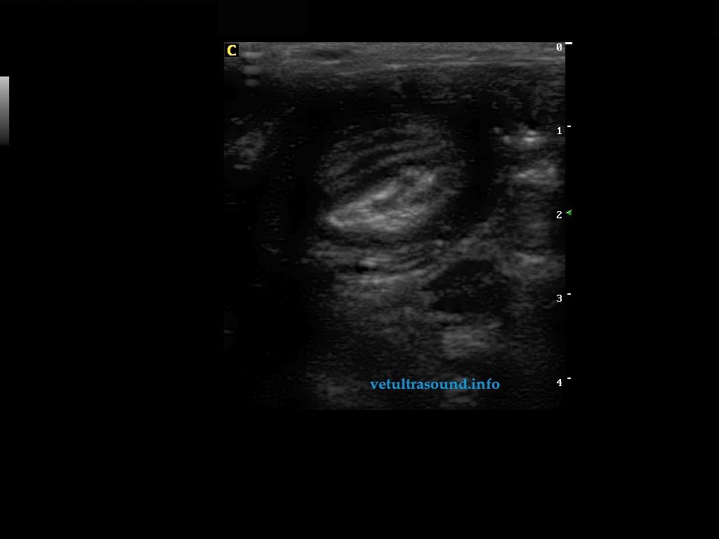 History: Small intestine diarrhea since one week. The puppy’s exam for Parvovirus was negative. Despite the symptomatic treatment the patient was getting worse. One day before the Ultrasound exam the patient started vomiting.