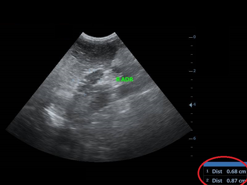 There was a mild Increase in the diameter of the caudal pole of both adrenal glands.(pic2-3)